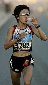 Die Solis 22º cursus Marathonius inter feminas factus est. Contra omnium exspectationem, Paula Radklife, athletissa Britannica, quae culmen mundanum mirifice attigit abhinc nonnullos menses, tempore duarum horarum et quindecim minutarum; hodie male se habuit et sex chiliometra ante metam cursum interrumpere coacta est. Expeditior igitur competitricibus via facta est ad metam. Jam enim factum erat ut decem chiliometra ante metam, athletissa Japona Mizuki Noguchi impetum faceret cursum accelerans, neque ceterae valerent una cum ea prima acie cursare. Prima igitur Mizuki Noguchi metam transivit et aureo numismate honorata est. Post eam Keniata Catherina Ndereba argenteum numisma meruit. Tertio denique loco metam transivit Americana Septentrionalis Deena Kastor, et aeneum numisma adepta est.