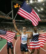 "Quattuorviri" selecti ab Americanis ad participandum certamen quadruplicis cursus 400 metrorum, Otis Harris, Derrick Brew, Jeremy Wariner ac Darold Williamson, ceteros athletas facile praestiterunt eosque superarunt, optimo quidem tempore 2:55.91. Secundi fuerunt Australiani cursores tempore 3:00.60 tertium denique locum et numisma aeneum obtinuerunt Nigeriani athletae, tempore 3:00.90.